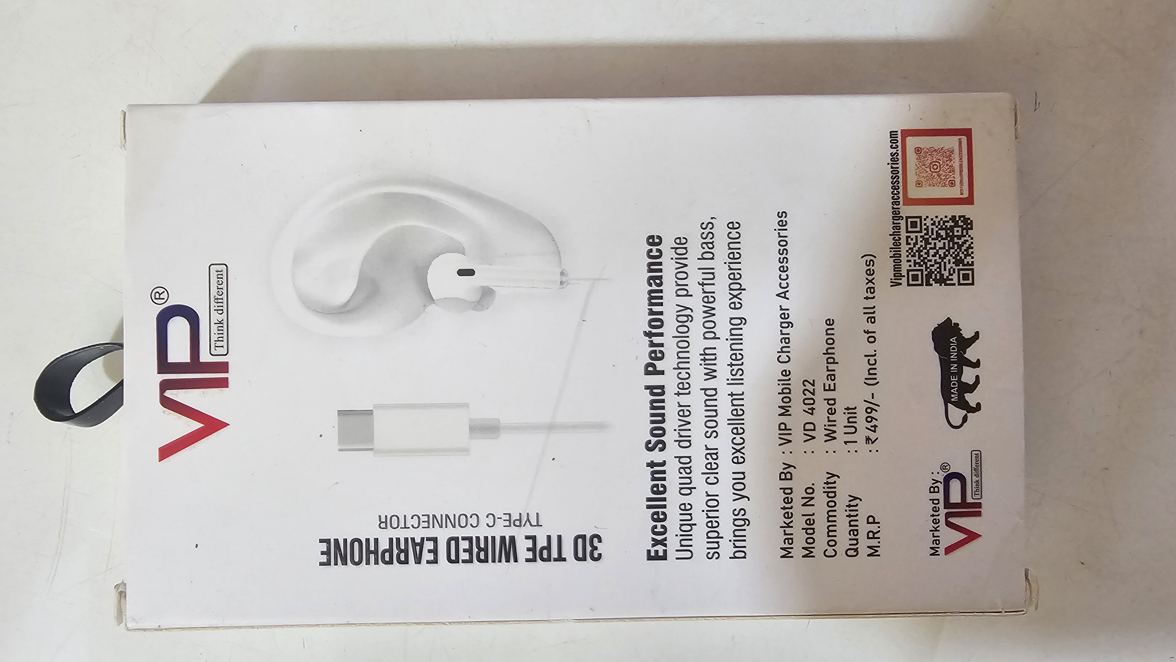VIP KD-4022 3D TPE wired earphones with a Type-C connector