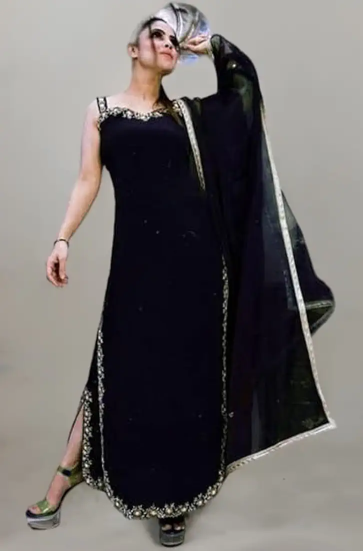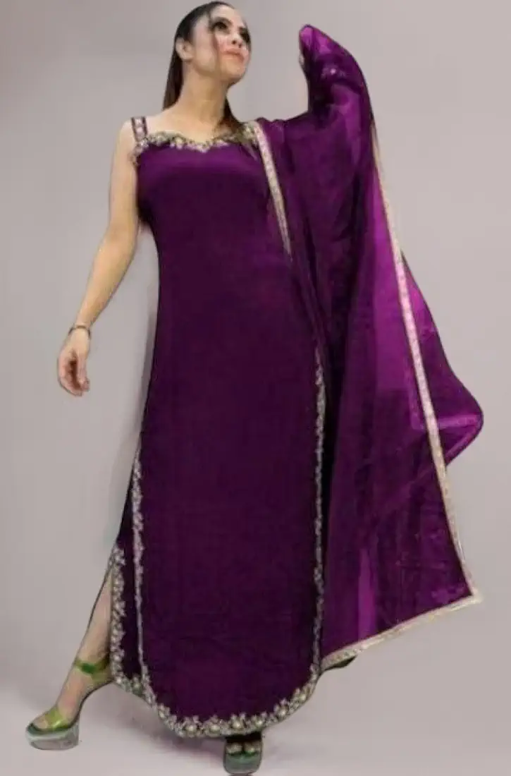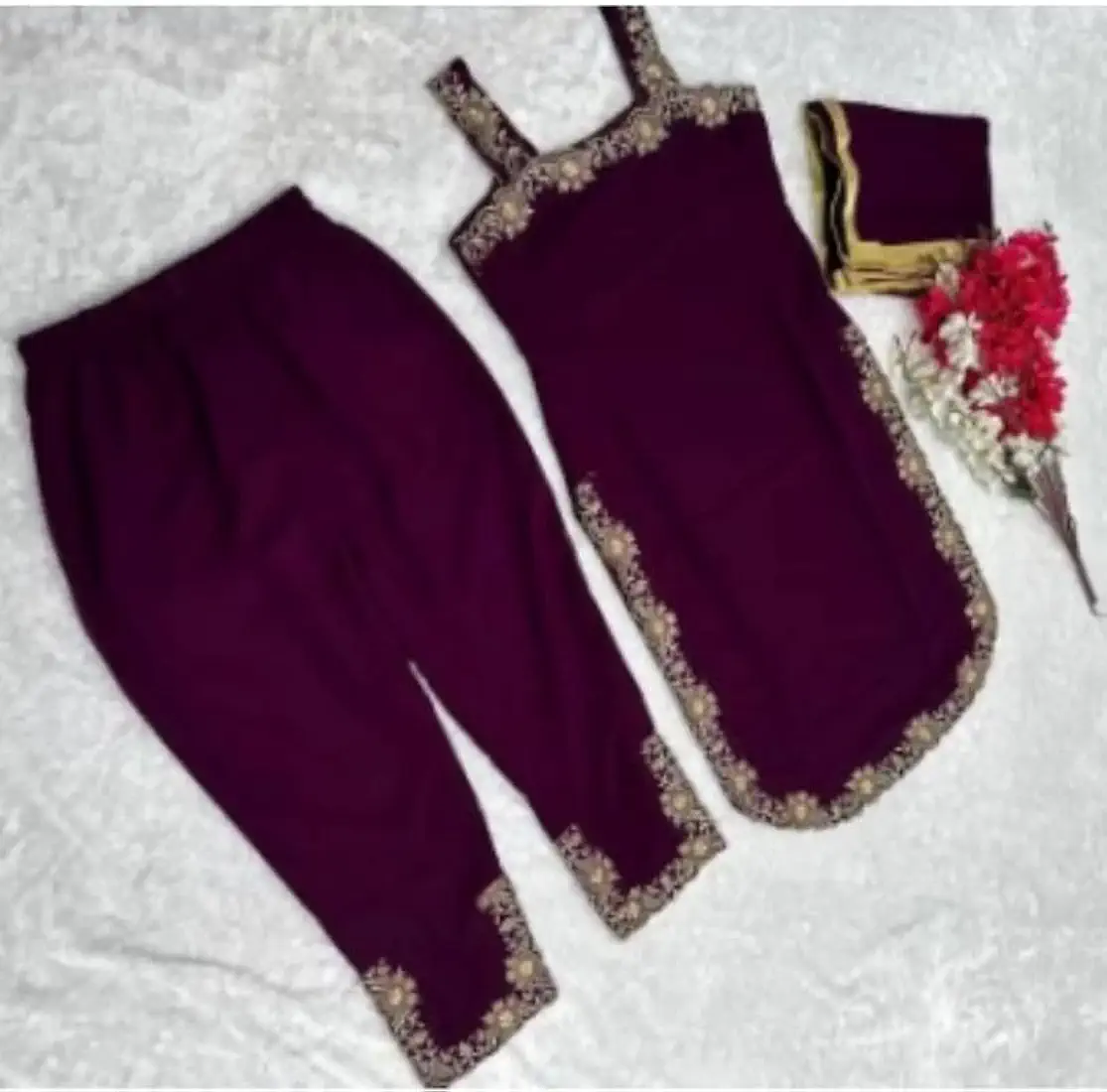 Women s Georgette Embroidery Sleeveless Round Neck Kurti Palazzo And Dupatta Set