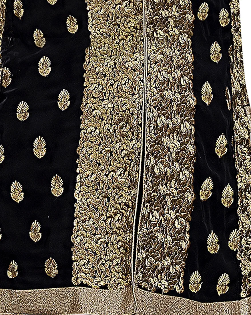 Generic Women s Georgette Unstitched Salwar Suit Material With Dupatta Black