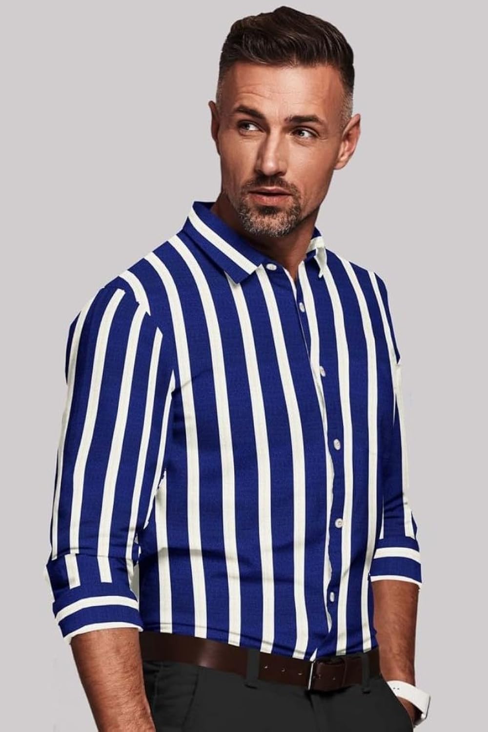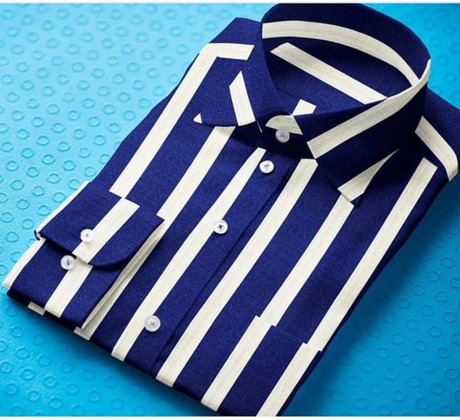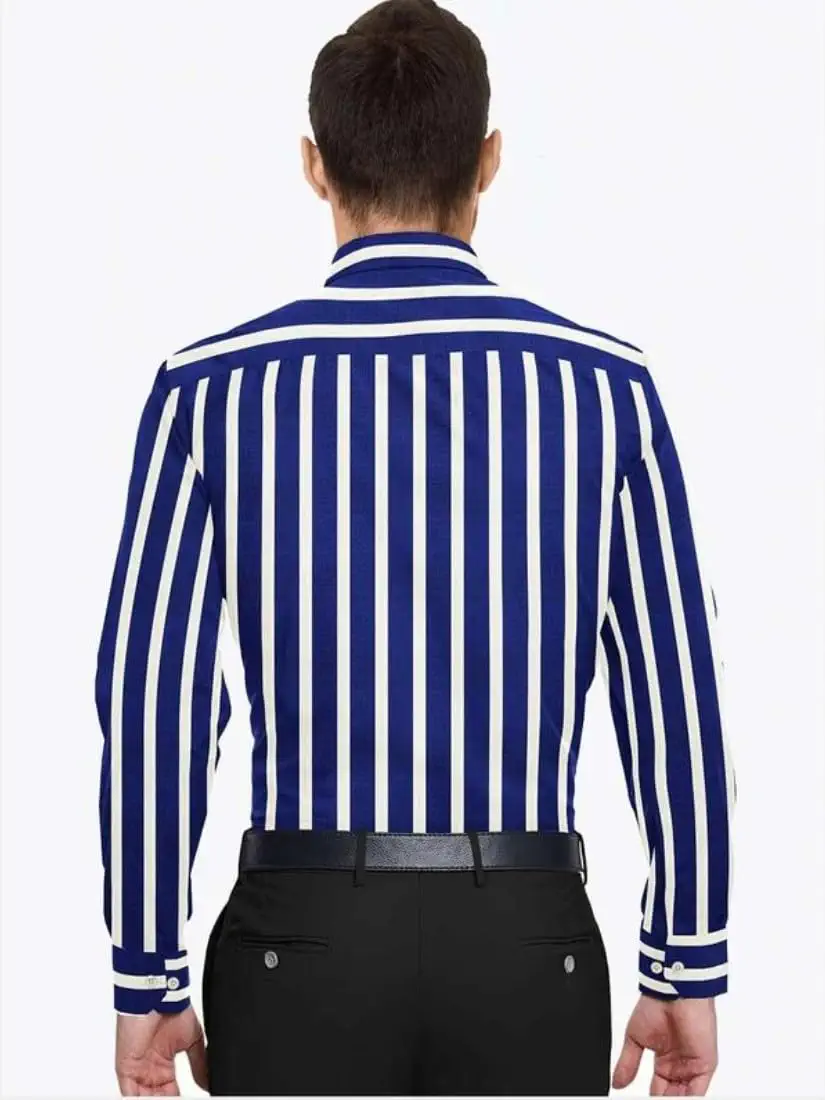 Men Cotton Blended Striped Full Sleeve Shirt White Blue