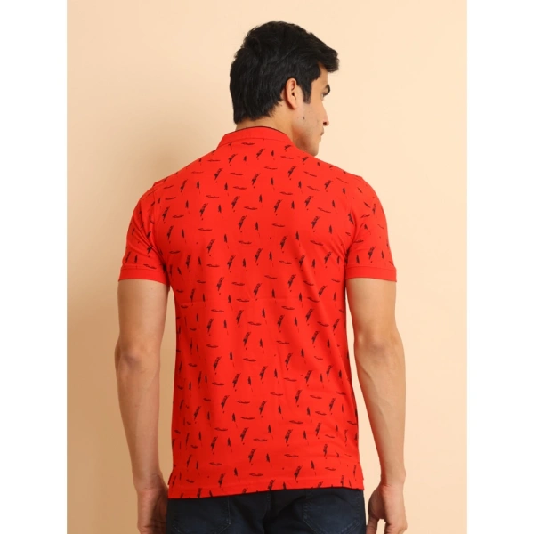 Men Casual Cotton Printed Mandarin Collar Half Sleeve T Shirt Red
