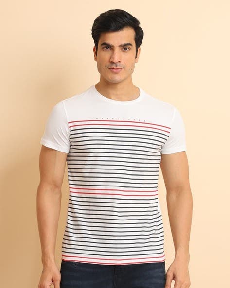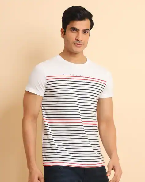Men Casual Cotton Printed Round Neck Half Sleeve T Shirt