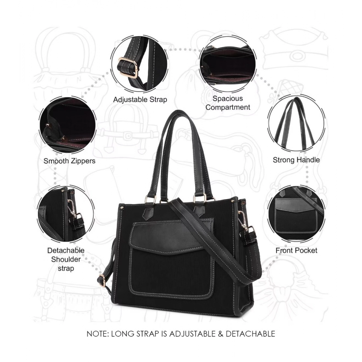 Women Canvas Medium Top handle Satchel Zipper Handbag Black