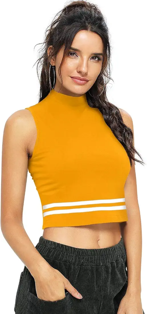 Generic Women Polyester Knitting Western Wear Tops Yellow