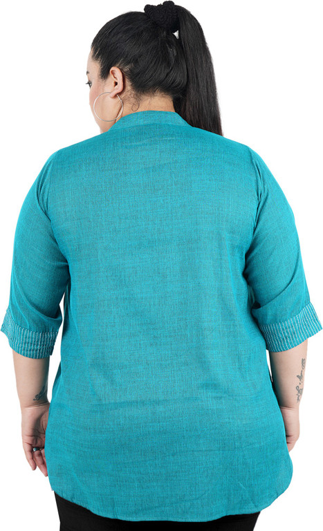Generic WomenS Casual Three Fourth Sleeve Embroidered Light Green Top Color Light Blue Material Cotton Linen Blend