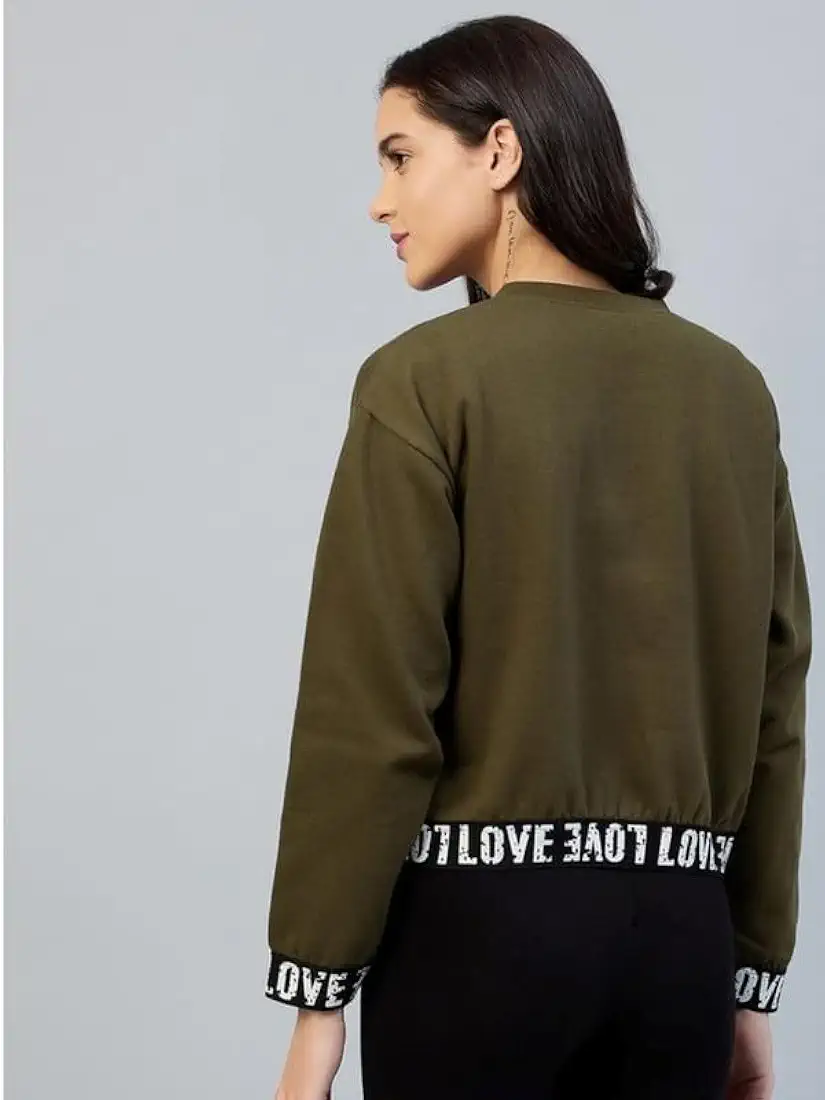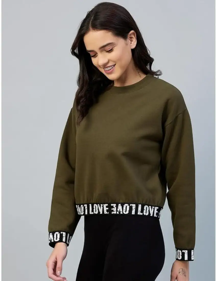 Womens Fleece Solid Long Sleeves Sweatshirt Olive