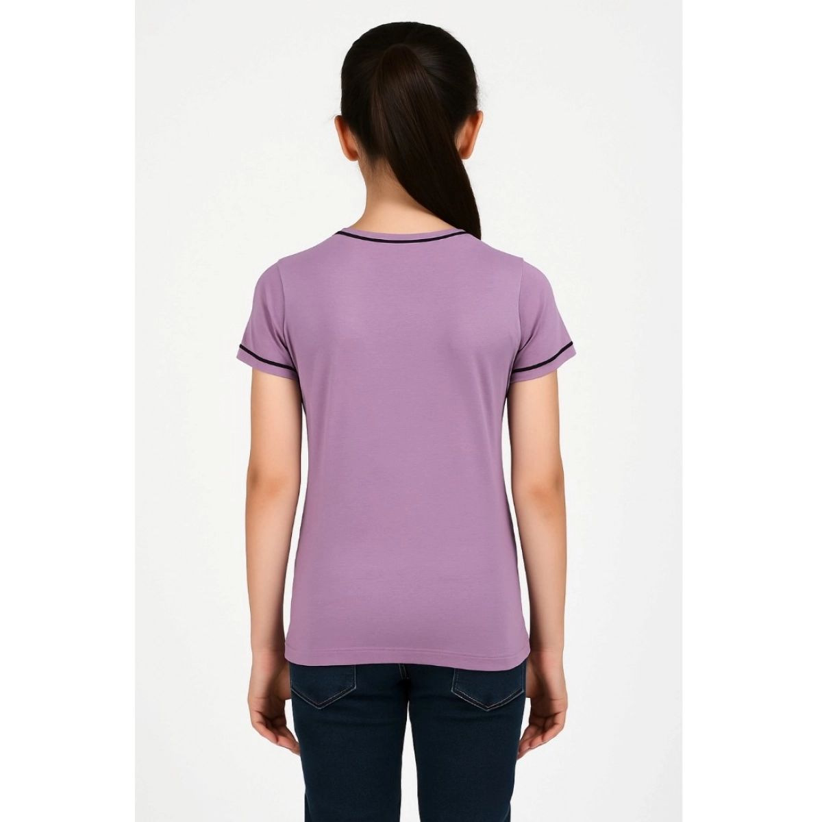 Generic Girl s Cotton Printeded Round Neck T-Shirt Lavander