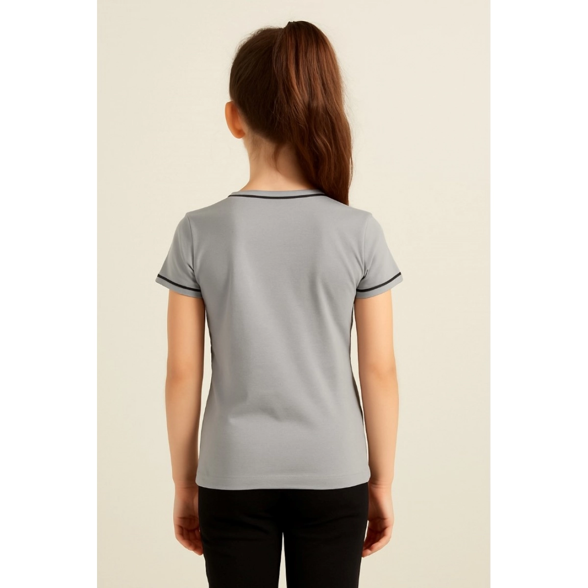 Generic Girls Cotton Printeded Round Neck T Shirt Grey