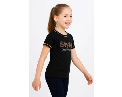 Generic Girls Cotton Printeded Round Neck TShirt Black