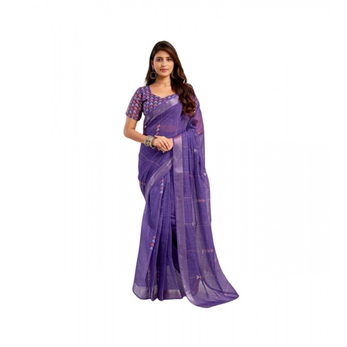 Women's Linen Cotton Printed Ready To Wear Saree With Unstitched Blouse 5.5 Mtr