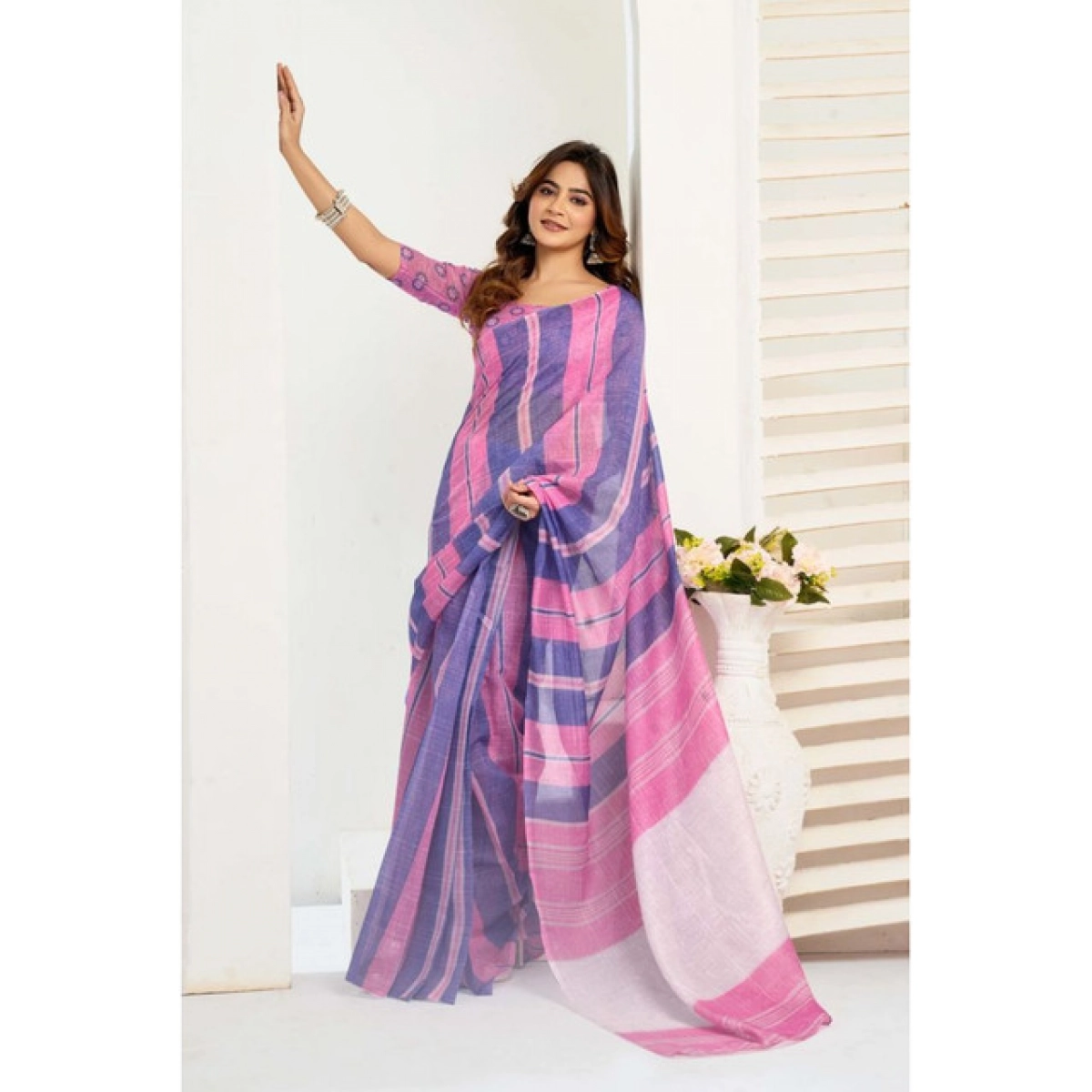 Women's Linen Cotton Printed Ready To Wear Saree With Unstitched Blouse 5.5 Mtr