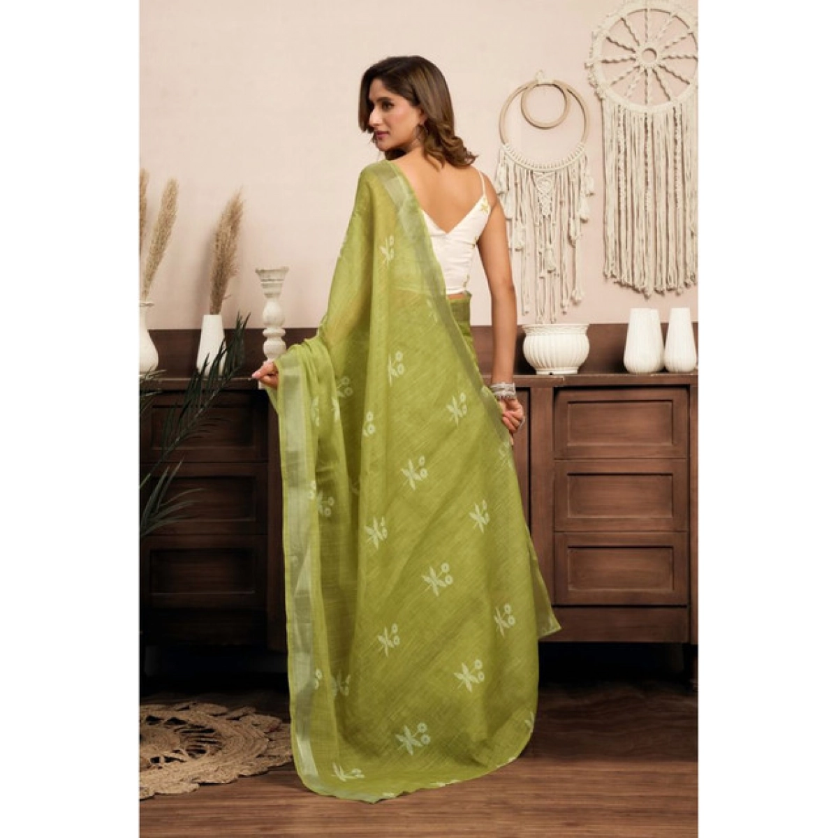 Generic Women s Linen Cotton Printed Ready To Wear Saree With Unstitched Blouse Light Green