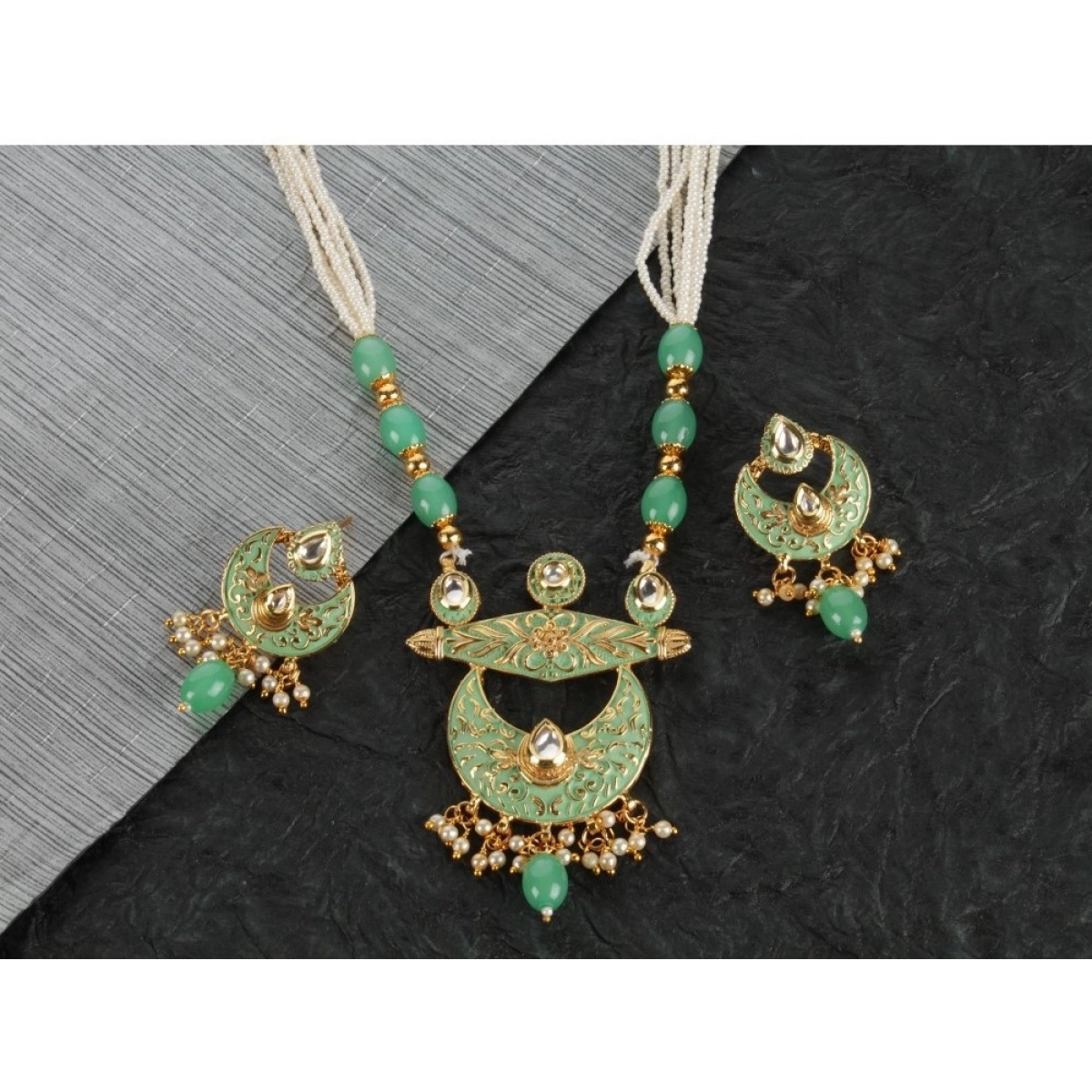 Generic Women s Rose Gold Plated Alloy Necklace Earings Set Green