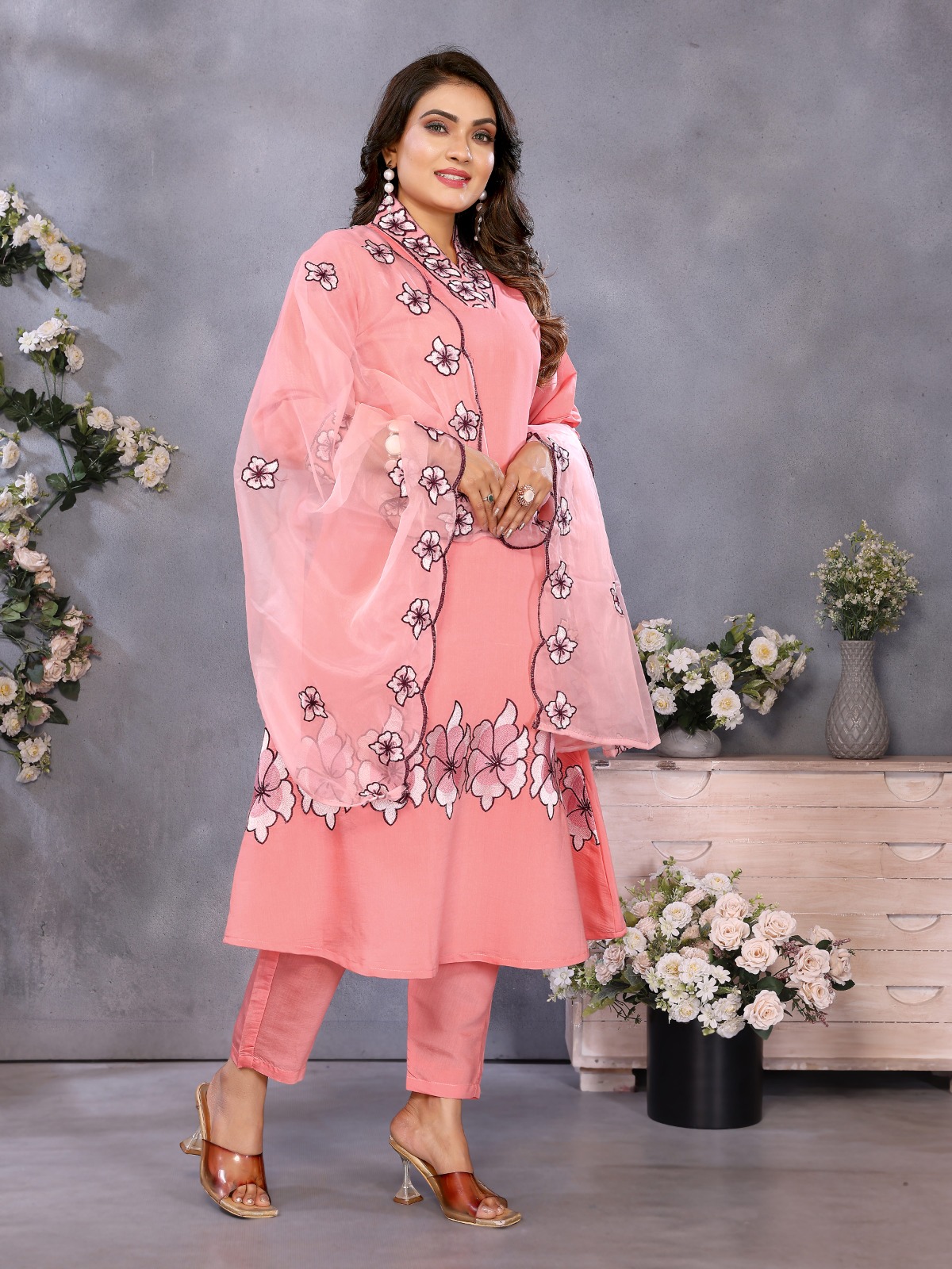 Style Kurti Pant Embroidered Dupatta Set
