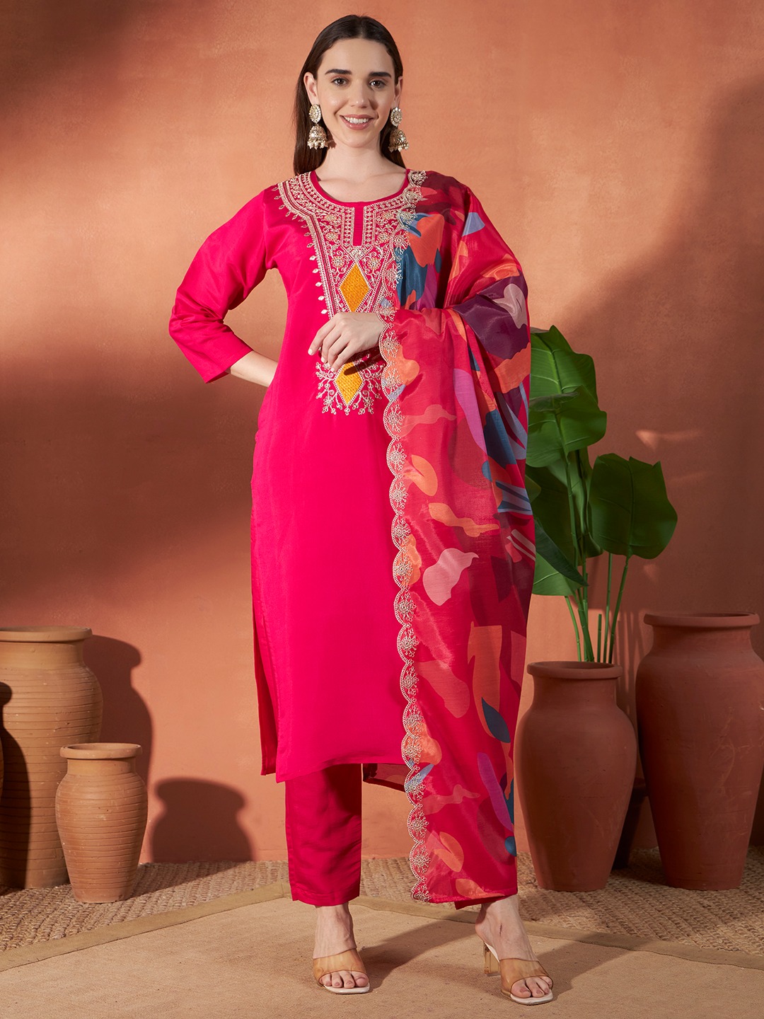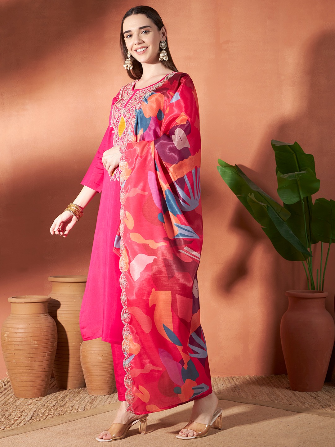 Fabric:- Kurta- Viscose :: Pant- Viscose :: Dupatta-Silk || Wash Care: Dry Clean
