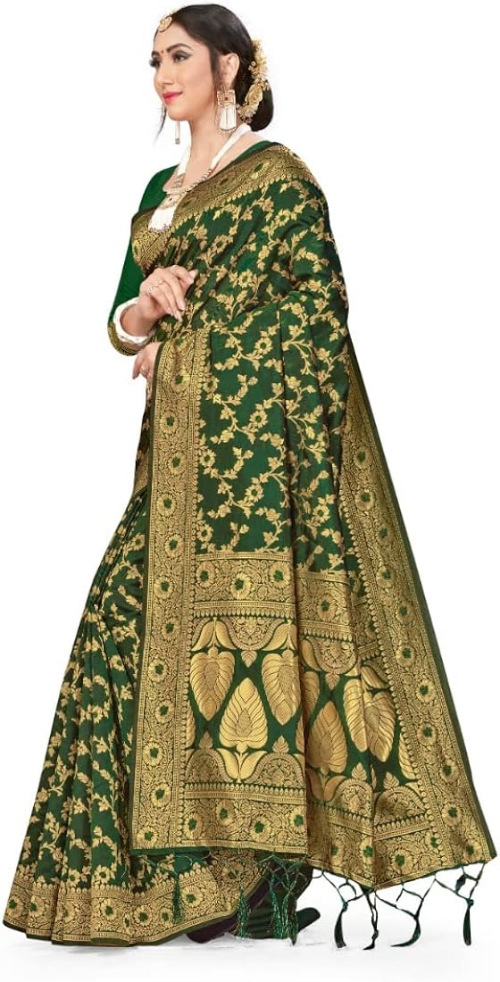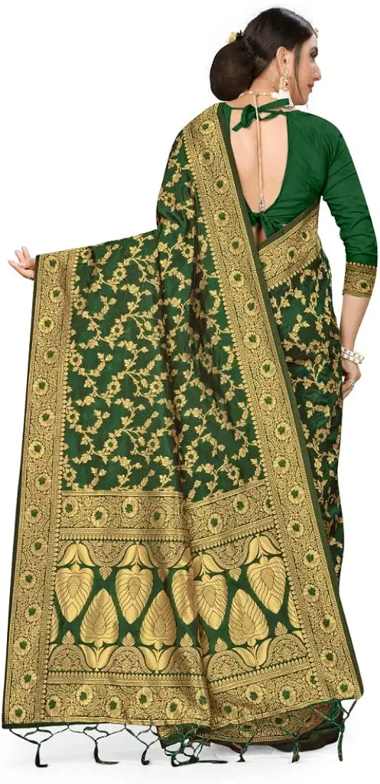 Generic Women s Banarasi Silk Saree With Blouse Green 5 6Mtrs