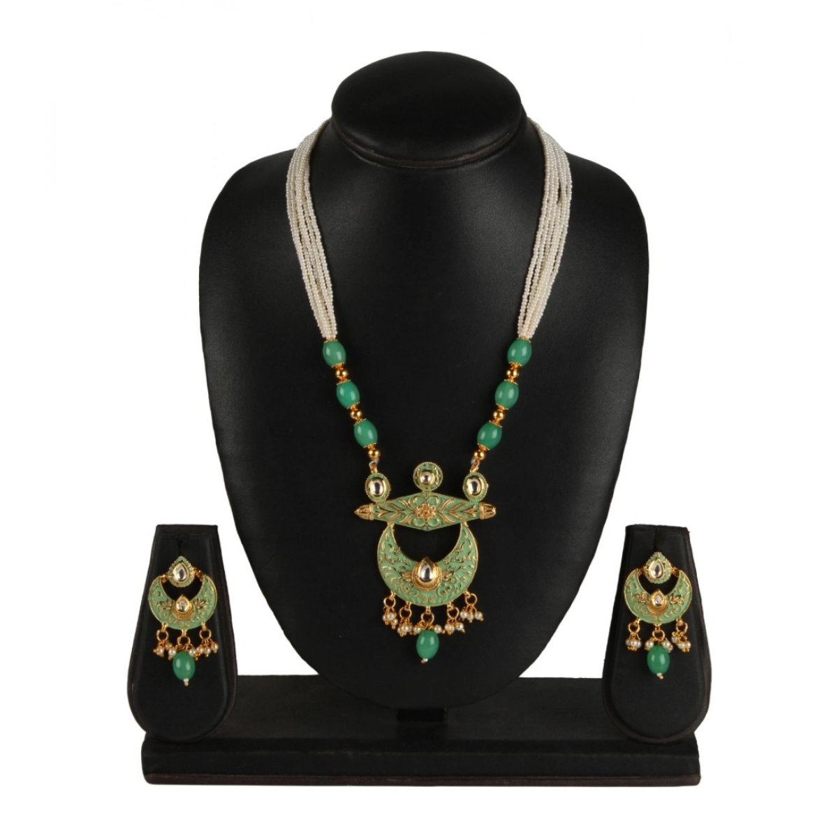 Lakshmi Green Lotus Necklace And Earring Set VC 290