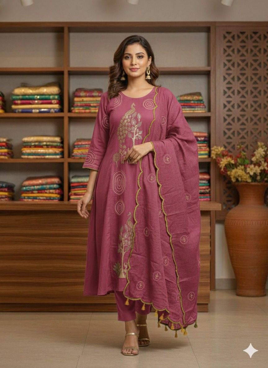 LILEN COTTON PUSHPA KURTI SUIT SET