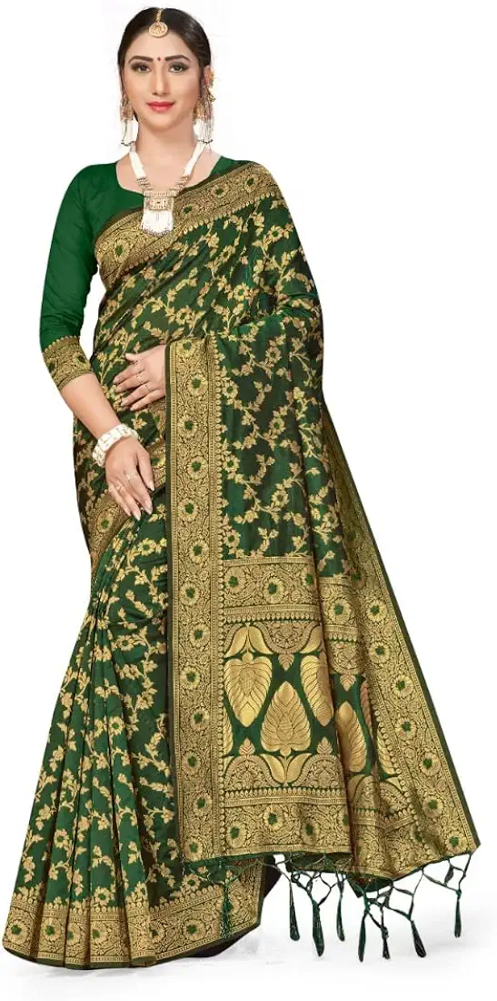 Generic Women s Banarasi Silk Saree With Blouse Green 5 6Mtrs