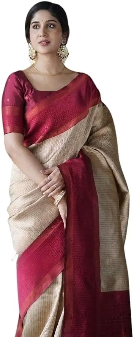 Womens Soft Lichi Silk Printed Saree With Unstitched Blouse Cream