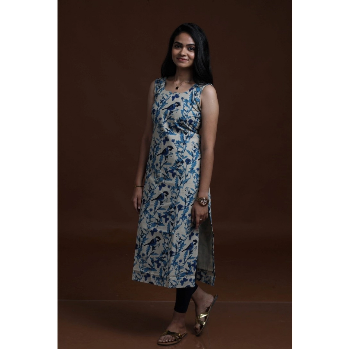 BLUE HAND PRINTED STRAIGHT COTTON KURTI 2PCS