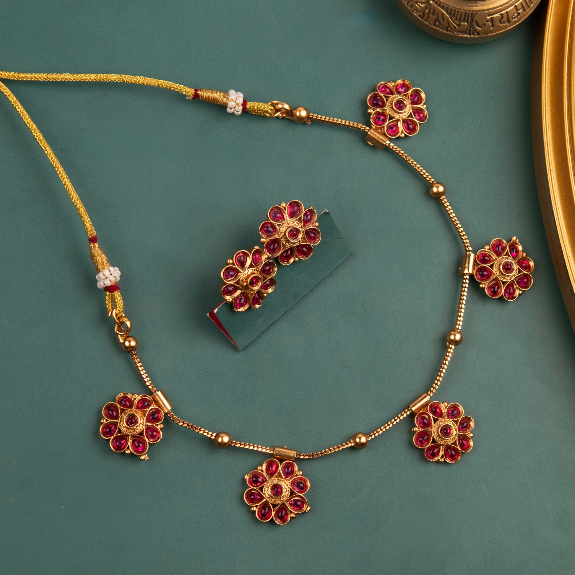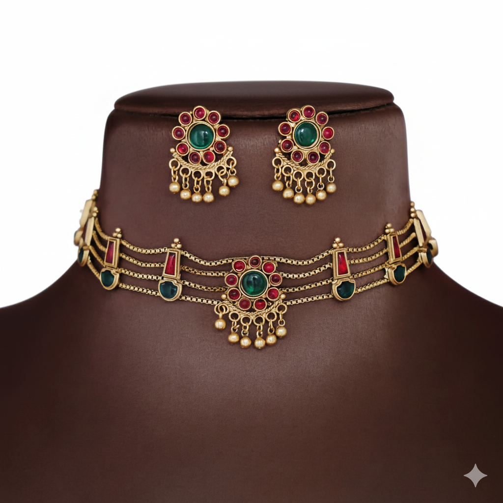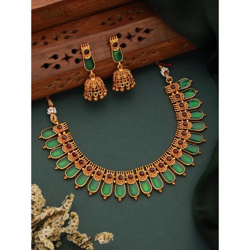 Traditional Temple Matte Gold-Plated Choker Necklace Set