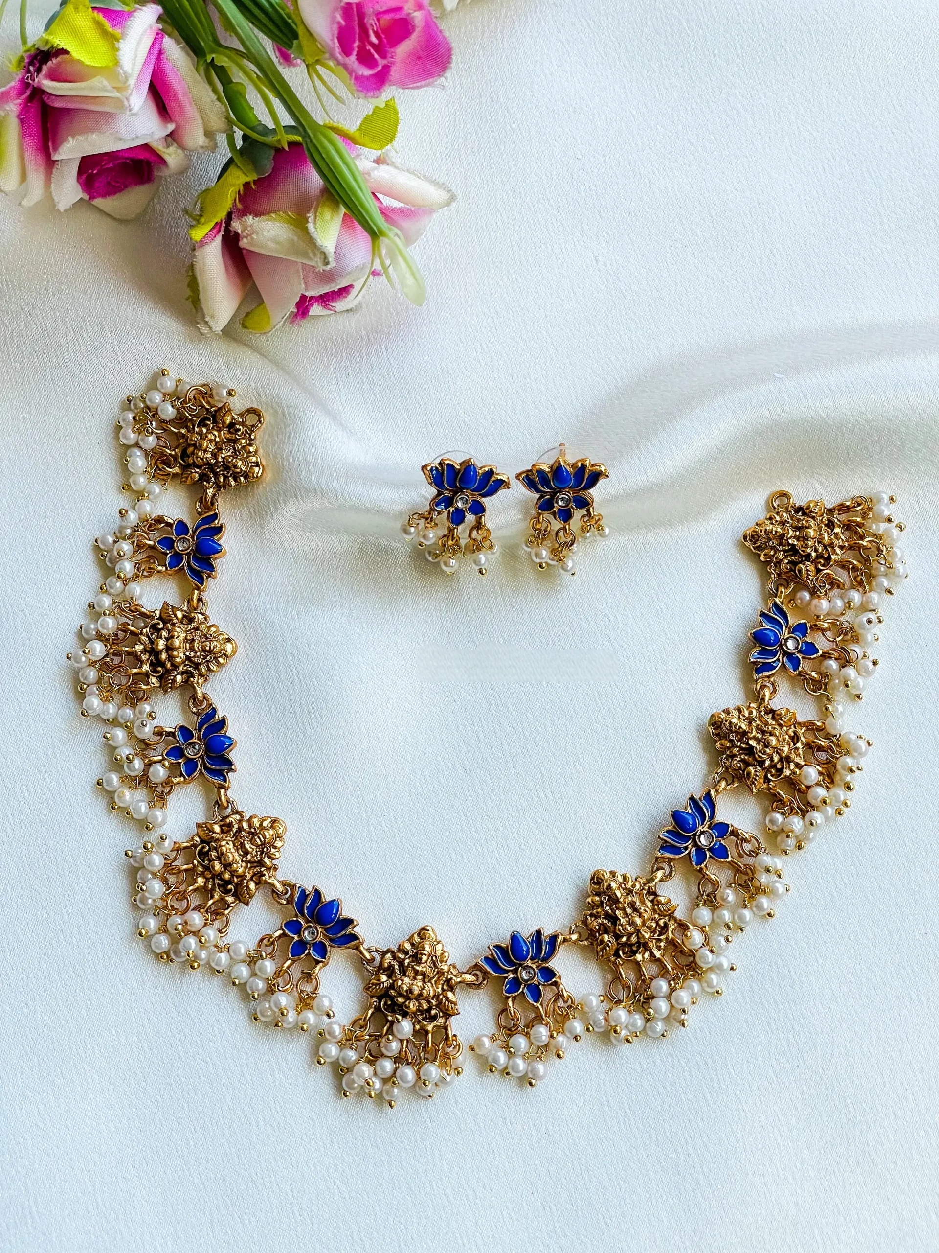 Lakshmi Blue Lotus Necklace And Earring Set VC 290