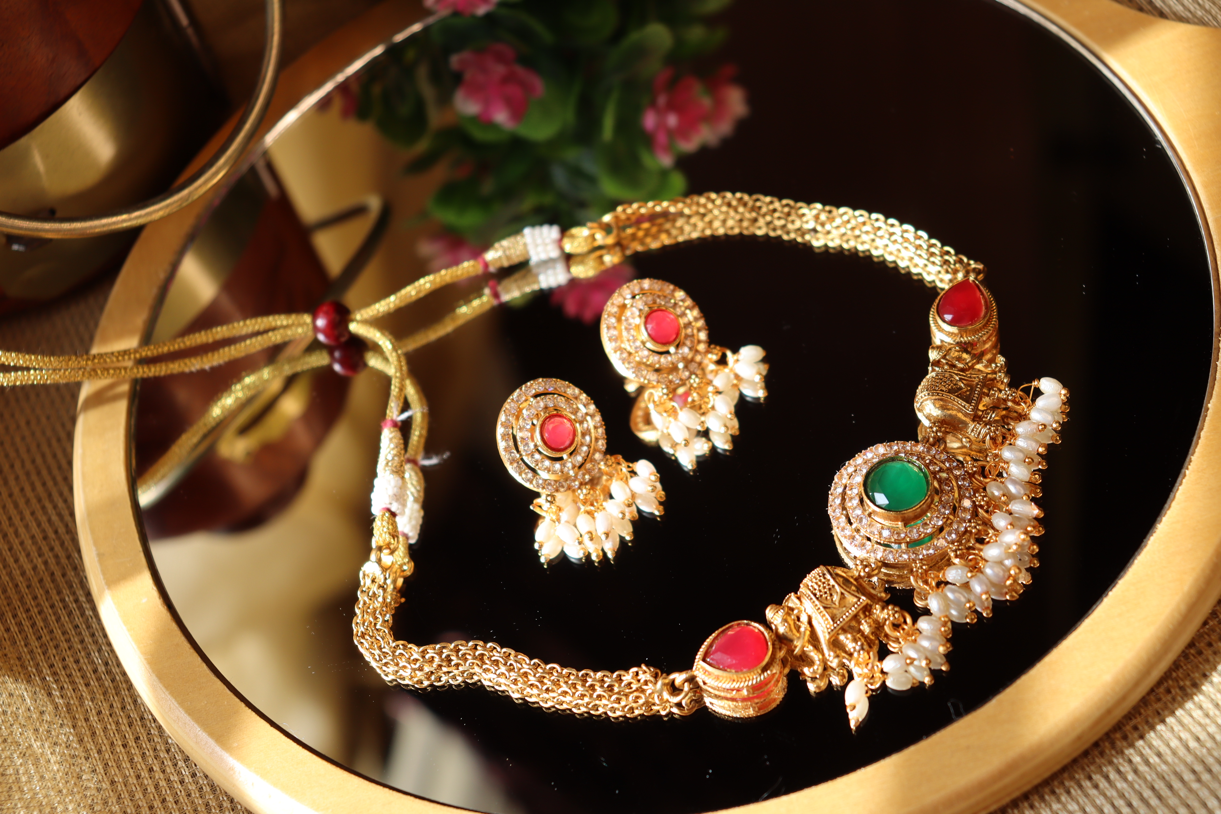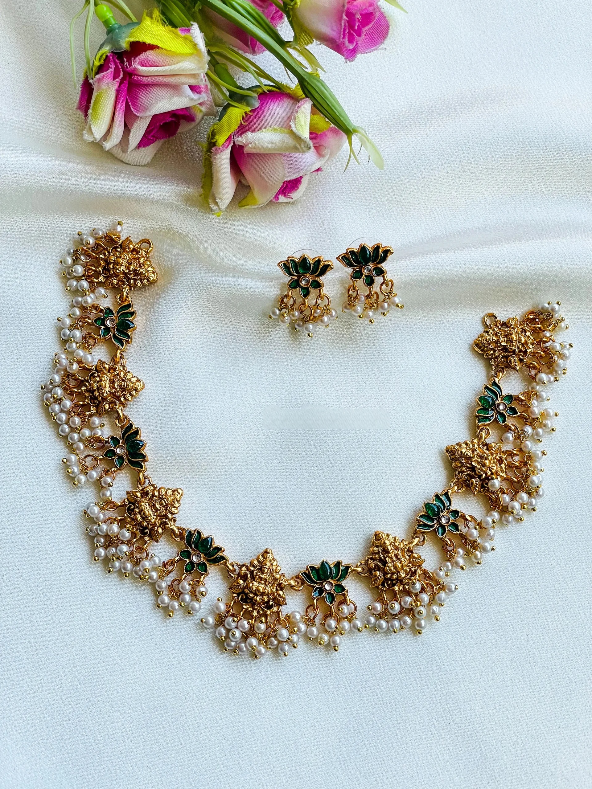 Lakshmi Green Lotus Necklace And Earring Set VC 290