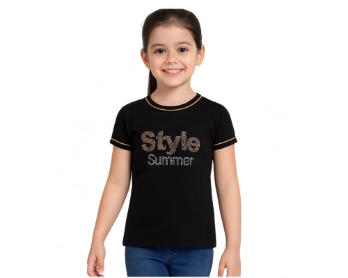 Generic Girls Cotton Printeded Round Neck TShirt Black